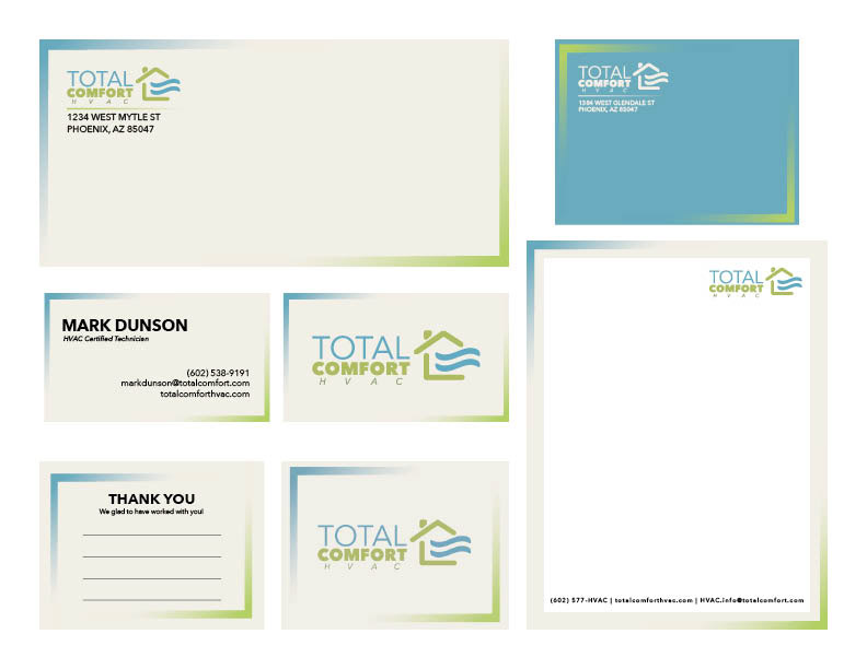 This is a rebrand for Total Comfort HVAC company local to Phoenix, Arizona. The goal was to create a modern brand look that was eye catching and made them stand out against the local competitors.